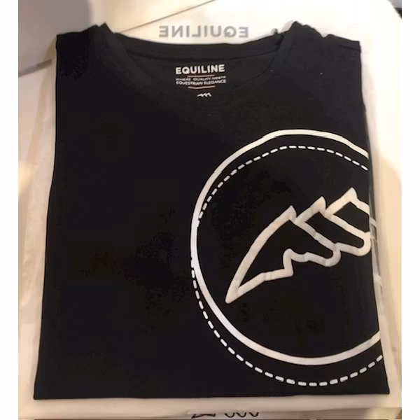 En skön och stilren t-shirt från Equiline.En väldigt t-shirt från Equiline som fungerar lika bra i stallet som till vardags. Bomullstyget är mjukt och skönt att