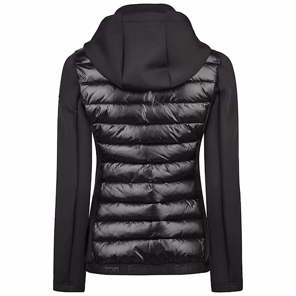 Dynamic hybrid jacka är tillverkad av en blandning av 4-vägs techjersey och quiltad nylon och har en ståkrage och en justerbar huva med tryckknapp. Jackan har en smal passform, en tvåvägsdragkedja och två sidofickor med dragkedjor. Resår i nederkanten säkerställer en säker passform. Den har ett Eskadron-tryck på bröstet och ärmsluten samt ett märke på ryggen för en sportig look.