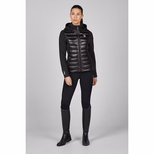 Dynamic hybrid jacka är tillverkad av en blandning av 4-vägs techjersey och quiltad nylon och har en ståkrage och en justerbar huva med tryckknapp. Jackan har e