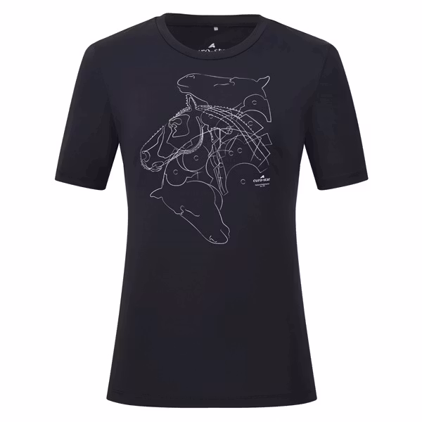 "Upplev ultimat komfort och stil med vår nya Fitted T-shirt. Tillverkad av snabbtorkande tyg med en kylande effekt, den här skjortan kommer att hålla dig fräsch hela dagen. Designen med rund hals och korta ärmar ger en klassisk look, medan folietrycket med strass framtill ger en touch av glamour. Håll dig sval och snygg till din tröja, den perfekta t-shirten.
