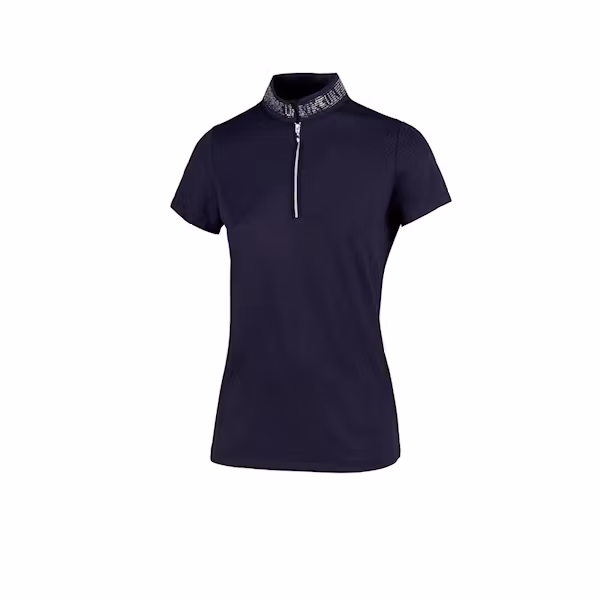 Pikeur Birby är en kortärmad funktionströja med 1/4 zip & strassbeklädd ståkrage.
