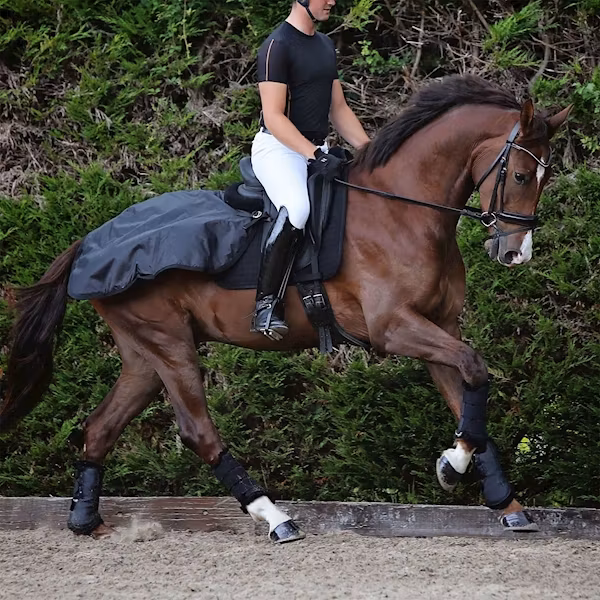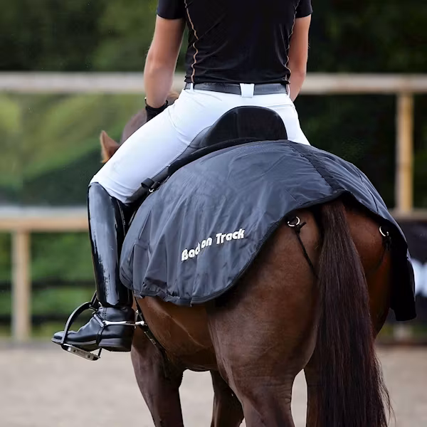 Vattenavvisande ländtäcke som enkelt fästs i sadeln, lämpligt att använda före/under/efter träning eller vid uteritter