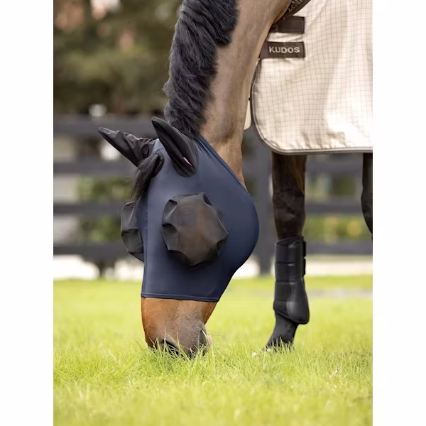 Den här luvan är perfekt för hästar som lätt störs av insekter under utomhusaktiviteter och är tillverkad av högkvalitativa material för att garantera ett effektivt skydd. Den har ett finmaskigt tyg som skyddar hästens ansikte och öron från flugor och ala flygande insekter, samtidigt som den ger god luftcirkulation för att förhindra överhettning.