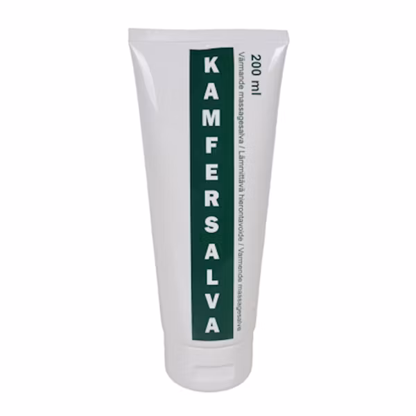 Kamfersalva är en hudvänlig salva som vid noggrann massering på huden verkar kärlvidgande. Detta förbättrar blodtillförseln till ömma muskler och leder. Säljes